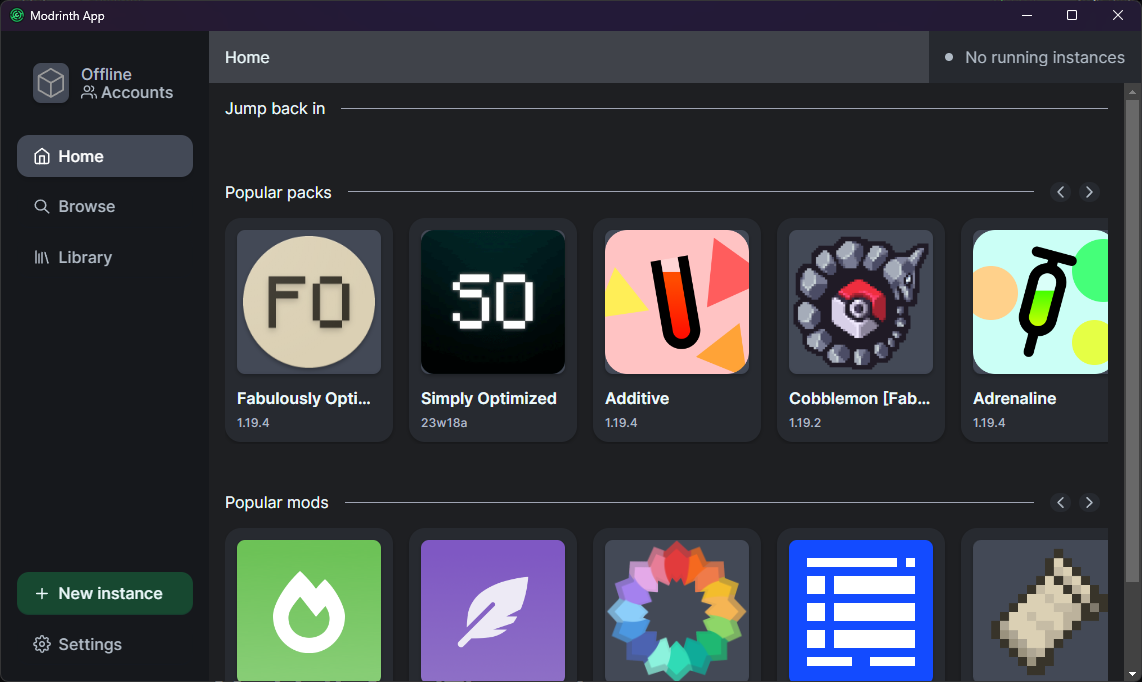 - Importowanie profili: Zaimportuj wszystkie swoje ulubione profile z wcześniej używanego launchera i zacznij korzystać z aplikacji Modrinth w kilka sekund!
