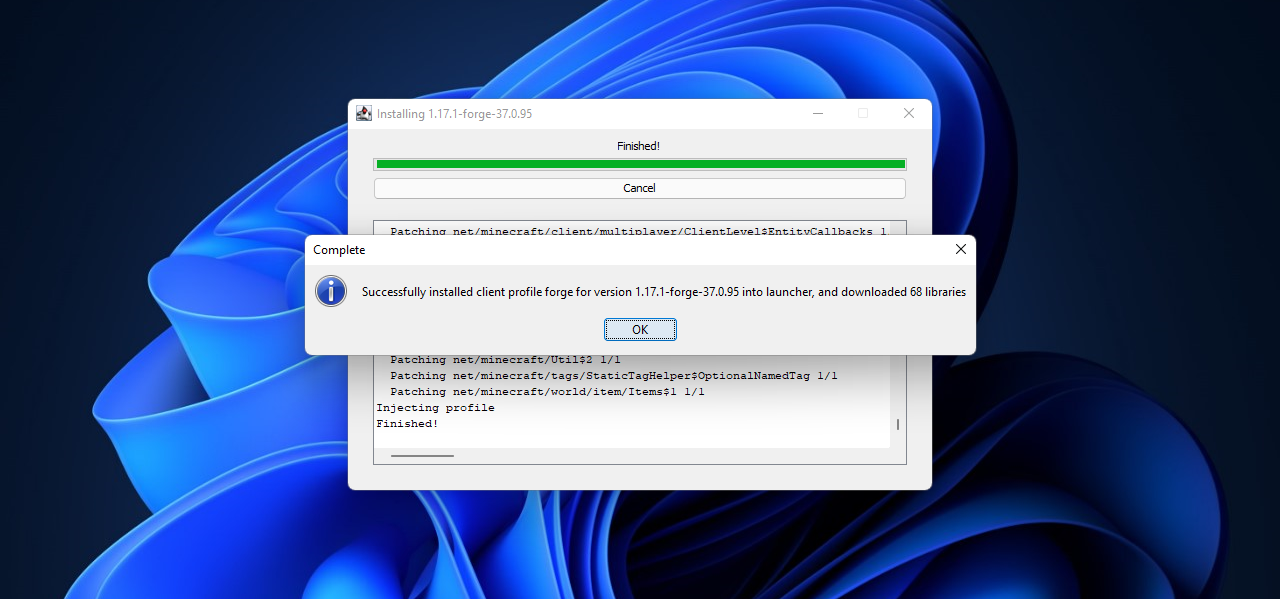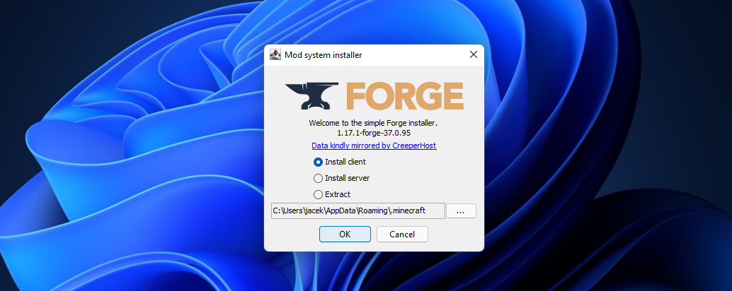 - Uruchom pobrany plik instalacyjny Minecraft Forge.