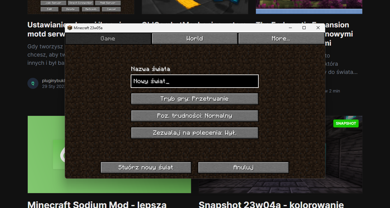 🏞️ Zaktualizowano ekran tworzenia nowego świata. Teraz ma trzy zakładki: